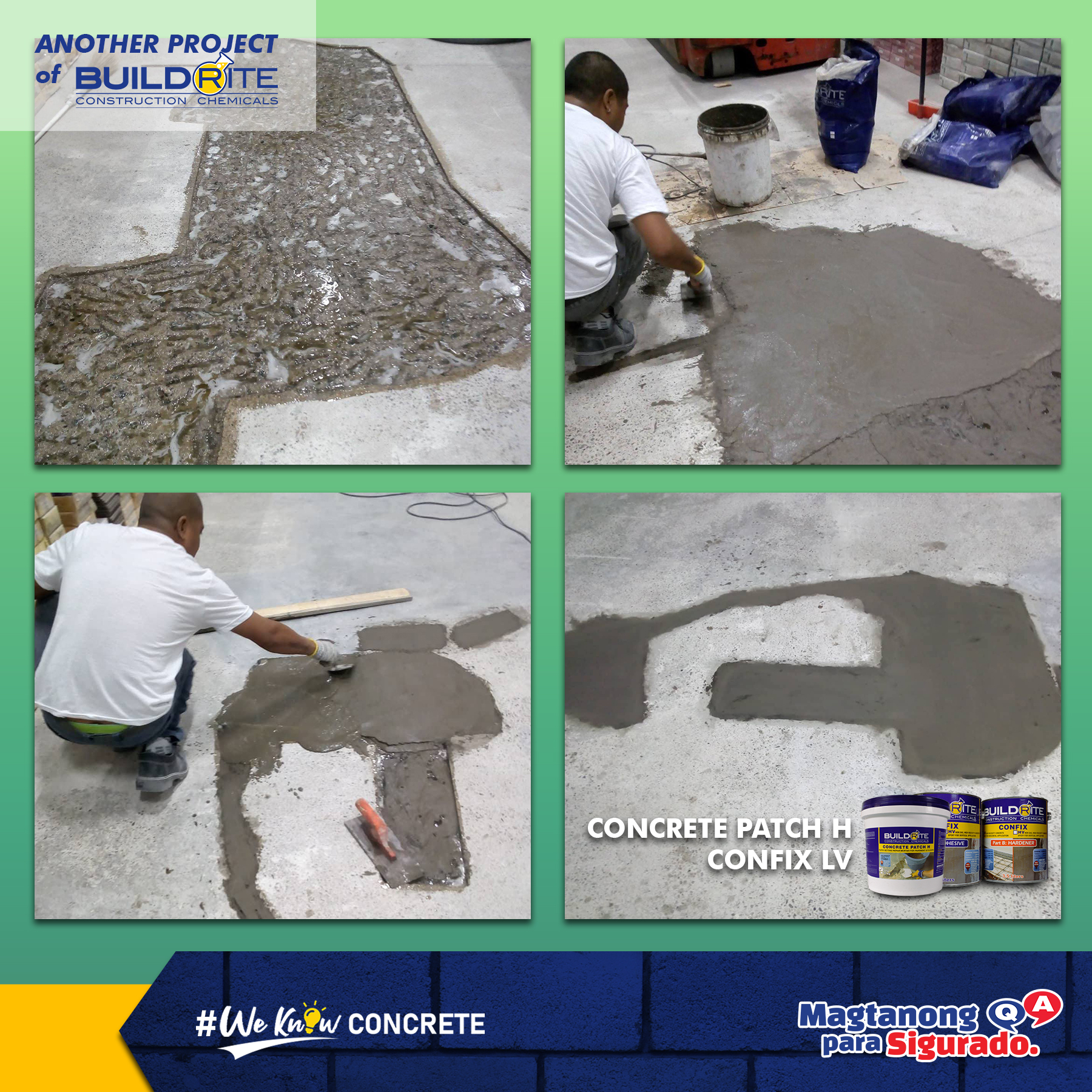 A popular retail store in Kawit, Cavite experienced concrete spalling on the floor of their establishment, which is causing trouble and hampering their work. Upon seeing our posts about concrete spalling, they immediately messaged us to ask for help. The building manager said that they need a repair mortar that would allow them to use the floor the next morning as they cannot afford to stop their operations for a very long time. So, we recommended CONFIX LV and CONCRETE PATCH H for the project.