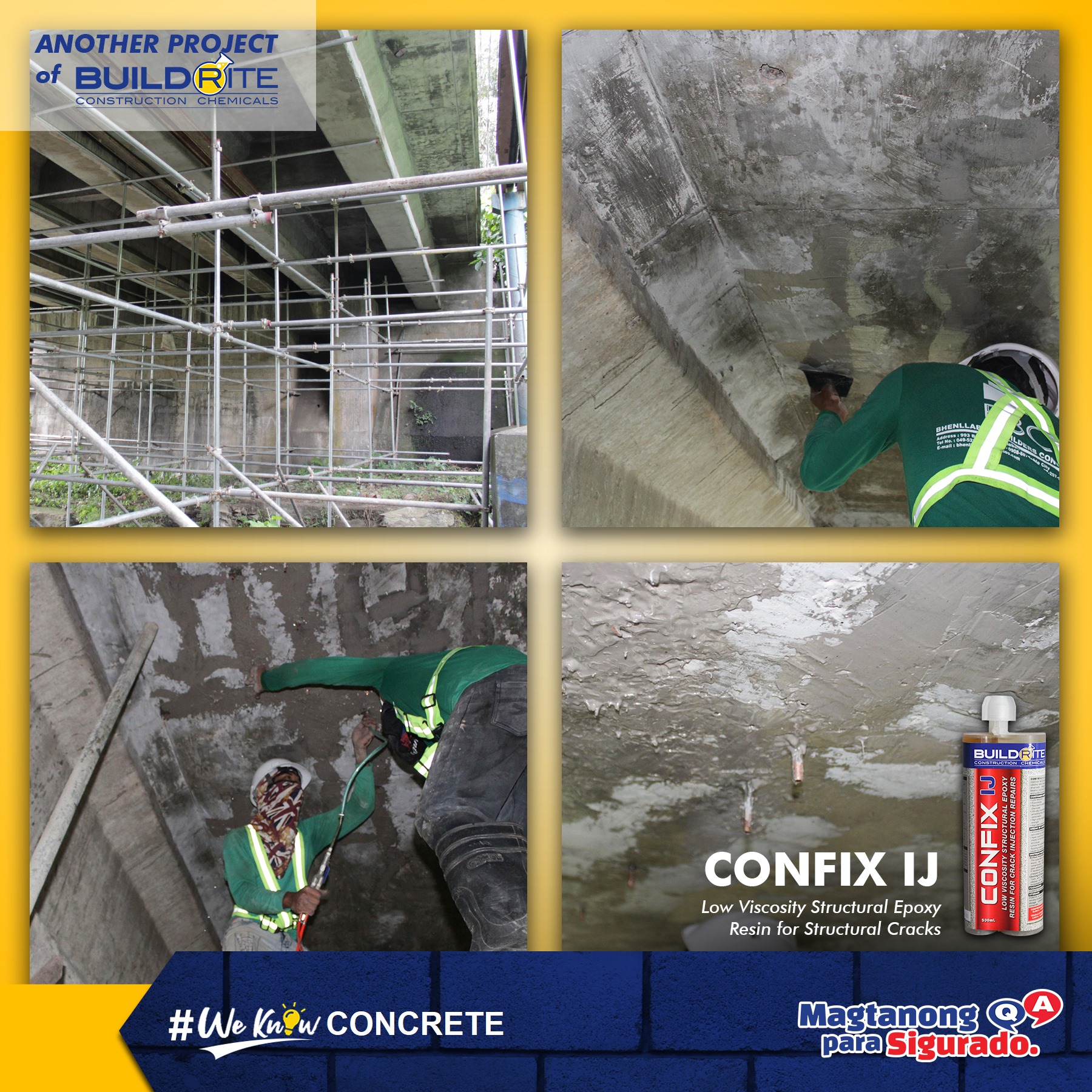 In this particular project, Bhenllabien Construction, a loyal client of Buildrite, had to repair a bridge in Laguna. They chose CONFIX IJ to repair the cracks of the bridge before retrofitting it. Using our product, they made sure that all existing cracks will be repaired first before applying carbon fibers on the bridge.