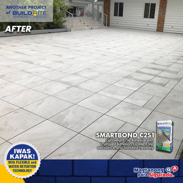 After a site inspection and consideration of the type and size of tile to be used, including the location of the area and the amount of load/traffic, we recommended SMARTBOND C2TS1. Since this is an exterior application, it's important to have a tile adhesive with an S rating to compensate the expansion, contraction, or movements of the substrate.