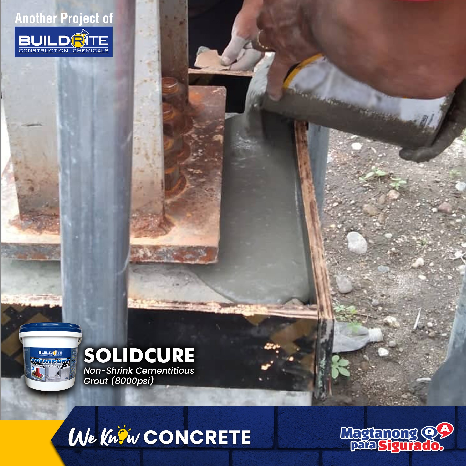 Buildrite Solid Cure is a highly flowable, non-shrink grout that can achieve 8,000psi compressive strength. It is a cement-based, high-strength expanding grout specially formulated for structural grouting operations, where positive expansion and non-staining characteristics are required. Solid Cure can also be used as a repair mortar for concrete honeycombs.