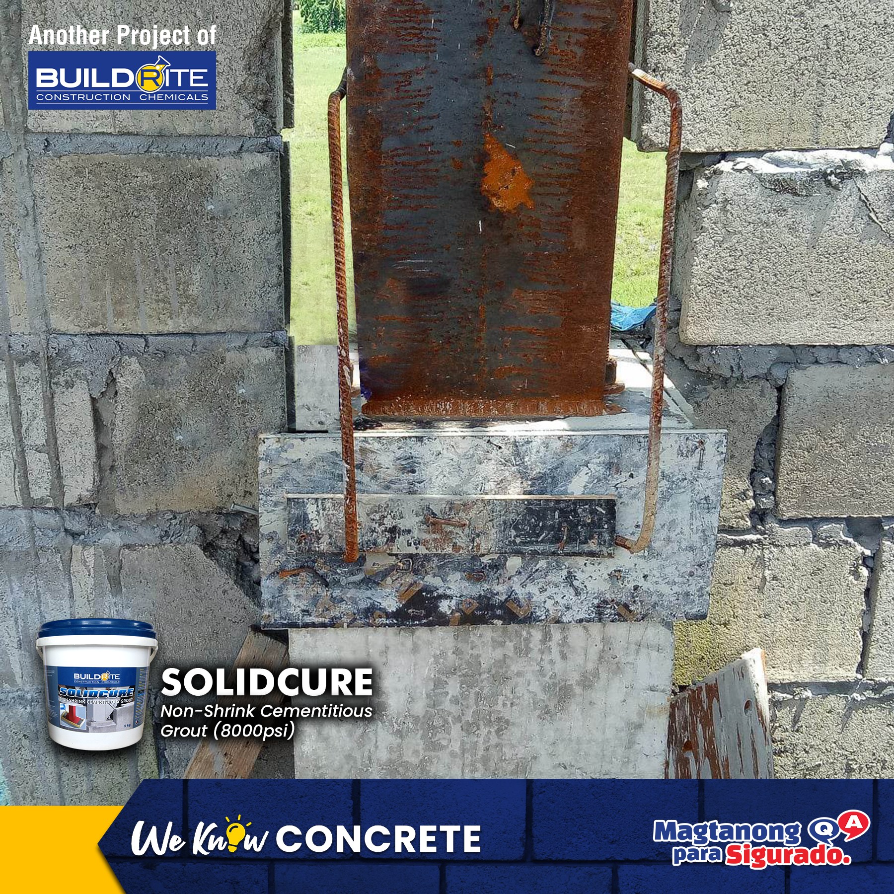 Buildrite Solid Cure is a highly flowable, non-shrink grout that can achieve 8,000 psi compressive strength. It is a cement-based, high-strength expanding grout specially formulated for structural grouting operations, where positive expansion and non-staining characteristics are required. Solid Cure can also be used as a repair mortar for concrete honeycombs.