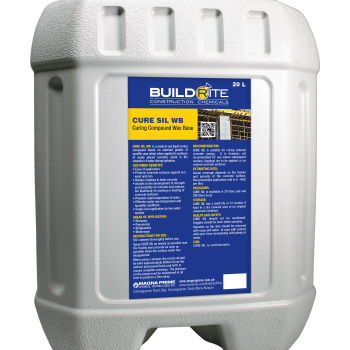 BUILDRITE CURE SIL WB is a ready to use liquid curing compound based on selected grades of paraffin wax which when applied to surfaces of newly placed concrete, assist in the retention of water during hydration.